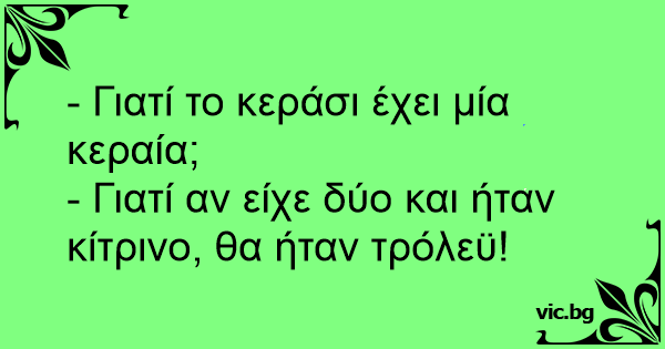 - Γιατί αν είχε δύο και ήταν κίτρινο, θα ήταν τρόλεϋ!