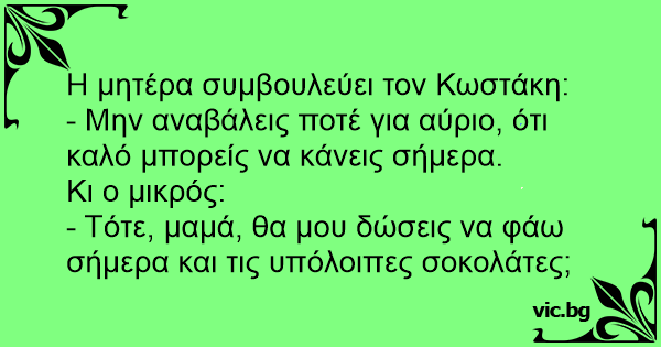 - Μην αναβάλεις ποτέ για αύριο, ότι καλό μπορείς να κάνεις σήμερα.