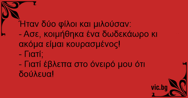 - Γιατί έβλεπα στο όνειρό μου ότι δούλευα!