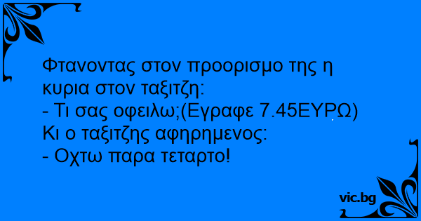 Φτανοντας στον προορισμο της η κυρια στον ταξιτζη: