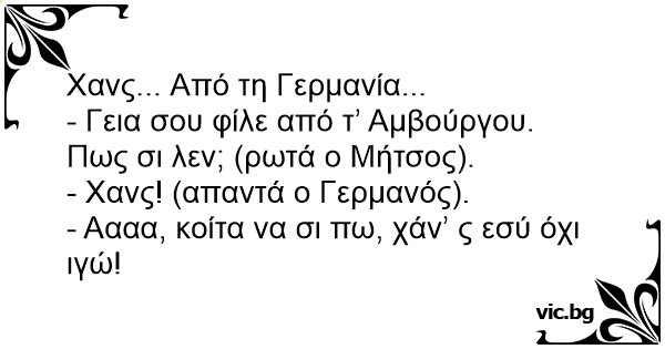 - Γεια σου φίλε από τʼ Αμβούργου. Πως σι λεν; (ρωτά ο Μήτσος).