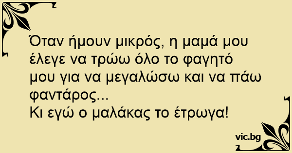 Όταν ήμουν μικρός, η μαμά μου έλεγε να τρώω όλο το φαγητό μου για να μεγαλώσω και να πάω φαντάρος...
