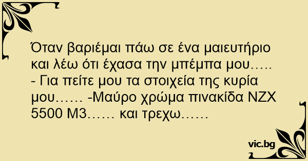 - Για πείτε μου τα στοιχεία της κυρία μου…… -Μαύρο χρώμα πινακίδα ΝΖΧ 5500 Μ3…… και τρεχω……