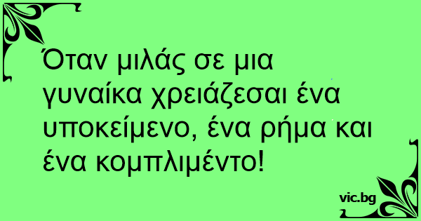 Όταν μιλάς σε μια γυναίκα χρειάζεσαι ένα υποκείμενο, ένα ρήμα και ένα κομπλιμέντο!