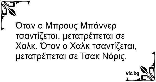 Όταν ο Μπρους Μπάννερ τσαντίζεται, μετατρέπεται σε Χαλκ. Όταν ο Χαλκ τσαντίζεται, μετατρέπεται σε Τσακ Νόρις.