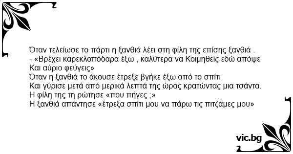 Όταν τελείωσε το πάρτι η ξανθιά λέει στη φίλη της επίσης ξανθιά .