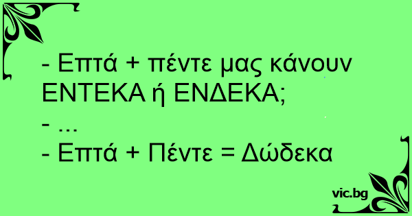 - Επτά + πέντε μας κάνουν ΕΝΤΕΚΑ ή ΕΝΔΕΚΑ;