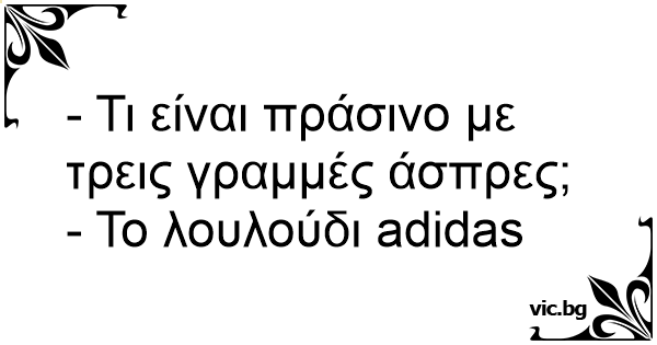 - Τι είναι πράσινο με τρεις γραμμές άσπρες;