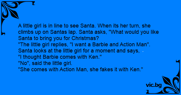 "The little girl replies, "I want a Barbie and Action Man".