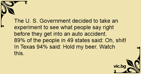 The U. S. Government decided to take an experiment to see what people say right before they get into an auto accident.