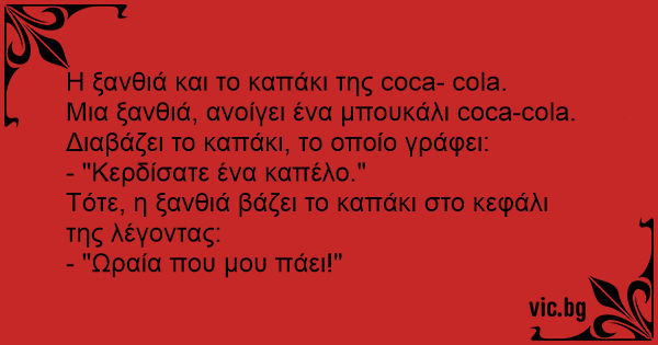 Μια ξανθιά, ανοίγει ένα μπουκάλι coca-cola. Διαβάζει το καπάκι, το οποίο γράφει: