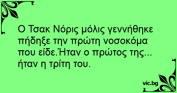O Τσακ Νόρις μόλις γεννήθηκε πήδηξε την πρώτη νοσοκόμα που είδε.Ήταν ο πρώτος της... ήταν η τρίτη του.
