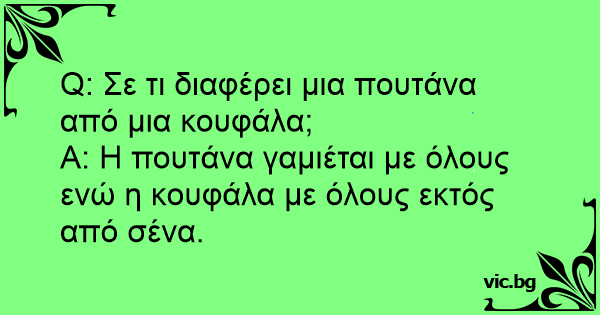 Q: Σε τι διαφέρει μια πουτάνα από μια κουφάλα;