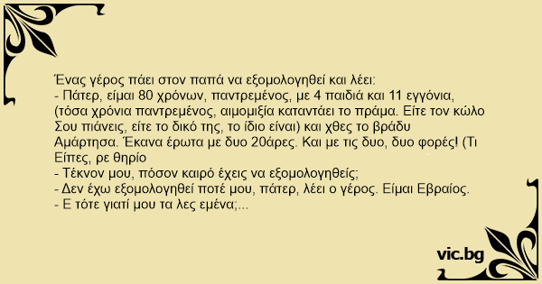 Ένας γέρος πάει στον παπά να εξομολογηθεί και λέει: