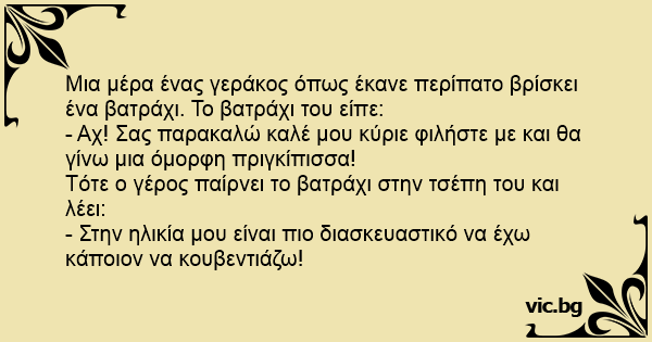 Τότε ο γέρος παίρνει το βατράχι στην τσέπη του και λέει: