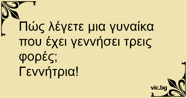 Πώς λέγετε μια γυναίκα που έχει γεννήσει τρεις φορές;<br />Γεννήτρια!
