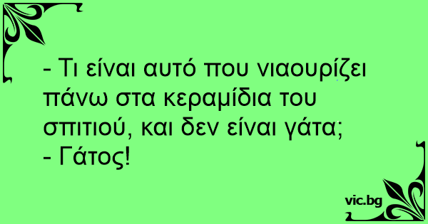- Τι είναι αυτό που νιαουρίζει πάνω στα κεραμίδια του σπιτιού, και δεν είναι γάτα;
