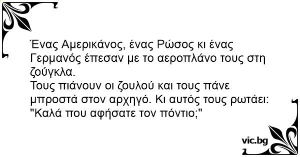 Ένας Αμερικάνος, ένας Ρώσος κι ένας Γερμανός έπεσαν με το αεροπλάνο τους στη ζούγκλα.