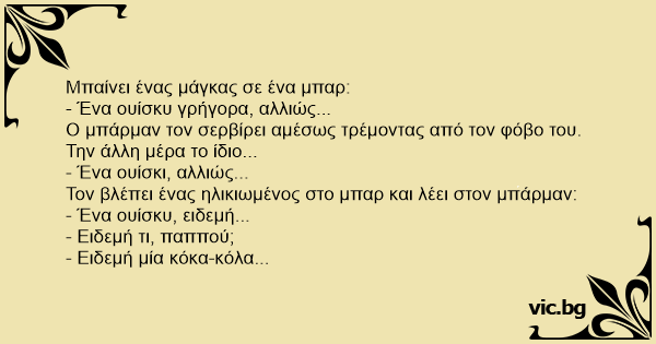 Μπαίνει ένας μάγκας σε ένα μπαρ: