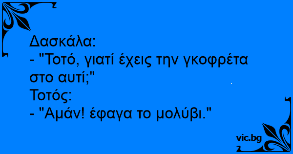 - "Τοτό, γιατί έχεις την γκοφρέτα στο αυτί;"