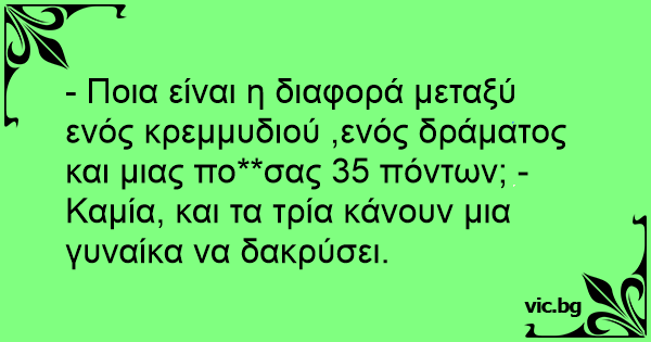 - Ποια είναι η διαφορά μεταξύ ενός κρεμμυδιού ,ενός δράματος και μιας πο**σας 35 πόντων; - Καμία, και τα τρία κάνουν μια γυναίκα να δακρύσει.