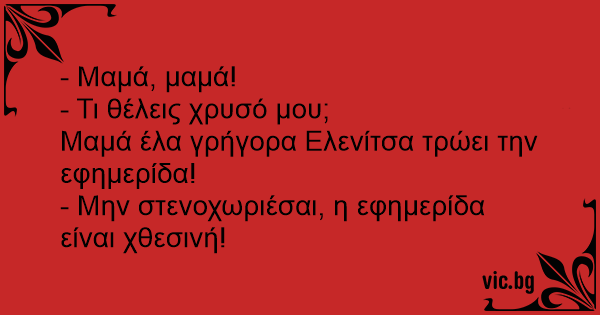 Μαμά έλα γρήγορα Ελενίτσα τρώει την εφημερίδα!