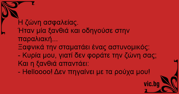 - Κυρία μου, γιατί δεν φοράτε την ζώνη σας;