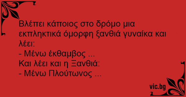 Βλέπει κάποιος στο δρόμο μια εκπληκτικά όμορφη ξανθιά γυναίκα και λέει: