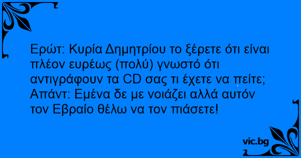 Ερώτ: Κυρία Δημητρίου το ξέρετε ότι είναι πλέον ευρέως (πολύ) γνωστό ότι αντιγράφουν τα CD σας τι έχετε να πείτε;
