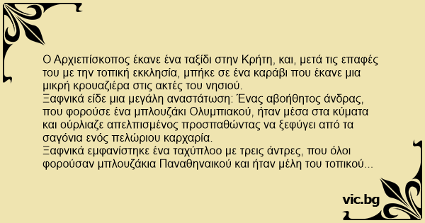 - Καλά, ρε, δεν ξέρεις τον Αρχιεπίσκοπο; Είναι ένας άνθρωπος του Θεού και κατέχει την θεία σοφία και τα διδάγματα.