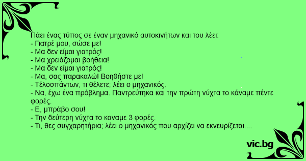 Πάει ένας τύπος σε έναν μηχανικό αυτοκινήτων και του λέει: