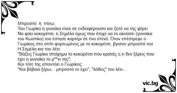 Του Γιωρίκα η γυναίκα είναι σε ενδιαφέρουσα και ζητά να της φέρει