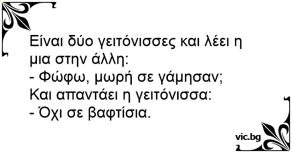 Είναι δύο γειτόνισσες και λέει η μια στην άλλη: