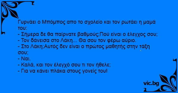 Γυρνάει ο Μπόμπος απο το σχολείο και τον ρωτάει η μαμά του: