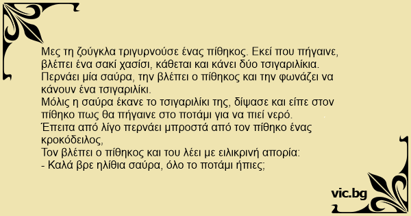 Περνάει μία σαύρα, την βλέπει ο πίθηκος και την φωνάζει να κάνουν ένα τσιγαριλίκι.