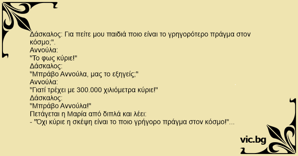Δάσκαλος: Για πείτε μου παιδιά ποιο είναι το γρηγορότερο πράγμα στον κόσμο;".