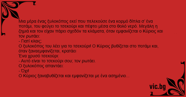 Ο ξυλοκόπος του λέει για το τσεκούρι! Ο Κύριος βυθίζεται στο ποτάμι και, όταν ξαναεμφανίζεται, κρατάει