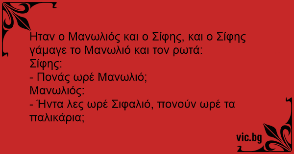 Ηταν ο Μανωλιός και ο Σίφης, και ο Σίφης γάμαγε το Μανωλιό και τον ρωτά: