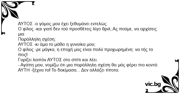 - Αγάπη μου, νομίζω ότι μια παράλληλη σχέση θα μάς φέρει πιο κοντά