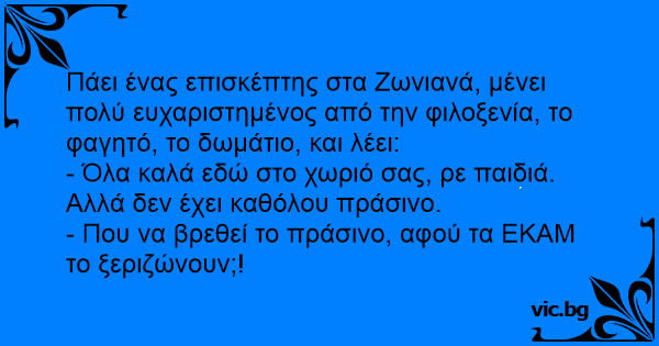 - Όλα καλά εδώ στο χωριό σας, ρε παιδιά. Αλλά δεν έχει καθόλου πράσινο.