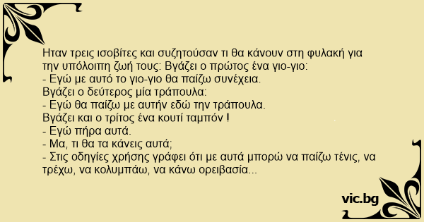 Ηταν τρεις ισοβίτες και συζητούσαν τι θα κάνουν στη φυλακή για την υπόλοιπη ζωή τους: Βγάζει ο πρώτος ένα γιο-γιο: