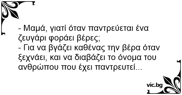 - Μαμά, γιατί όταν παντρεύεται ένα ζευγάρι φοράει βέρες;