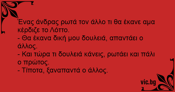 Ένας άνδρας ρωτά τον άλλο τι θα έκανε αμα κέρδιζε το Λόττο.