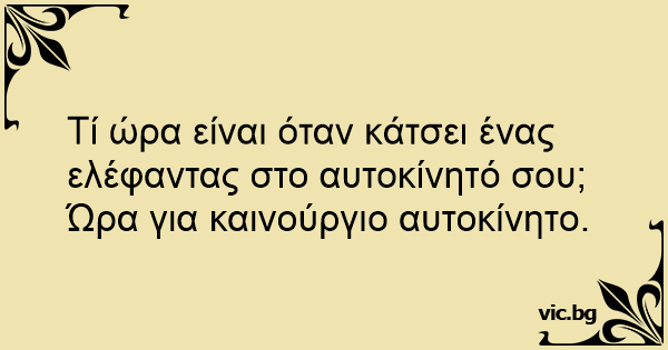 Τί ώρα είναι όταν κάτσει ένας ελέφαντας στο αυτοκίνητό σου;