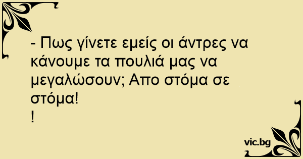 - Πως γίνετε εμείς οι άντρες να κάνουμε τα πουλιά μας να μεγαλώσουν; Απο στόμα σε στόμα!