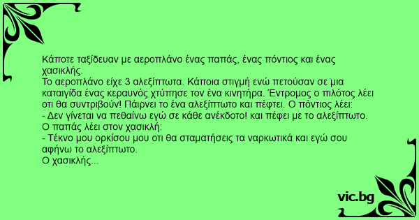 Κάποτε ταξίδευαν με αεροπλάνο ένας παπάς, ένας πόντιος και ένας χασικλής.