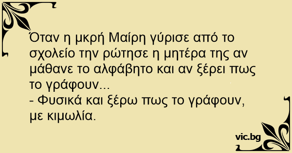 Όταν η μκρή Μαίρη γύρισε από το σχολείο την ρώτησε η μητέρα της αν μάθανε το αλφάβητο και αν ξέρει πως το γράφουν...