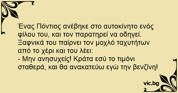 Ένας Πόντιος ανέβηκε στο αυτοκίνητο ενός φίλου του, και τον παρατηρεί να οδηγεί.