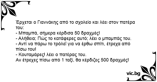 - Μπαμπά, σήμερα κέρδισα 50 δραχμές!