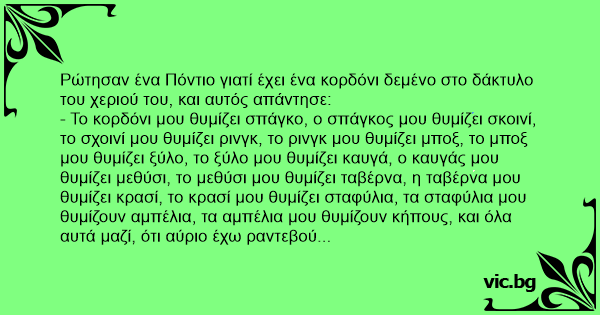 Ρώτησαν ένα Πόντιο γιατί έχει ένα κορδόνι δεμένο στο δάκτυλο του χεριού του, και αυτός απάντησε: